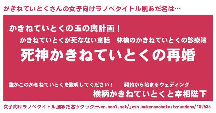 | ヒーロー風カッコイイあだ名 | 『慈愛の使者かきねていとく』 |