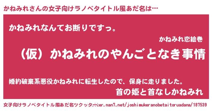 | 男性向けラノベタイトル風あだ名 | 『かねみれの憂鬱』『カネミレスレイヤー』 |