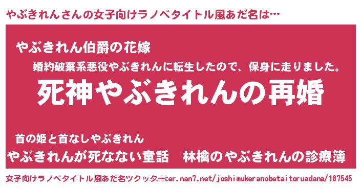 | ヒーロー風カッコイイあだ名 | 『慈愛の使者やぶきれん』『仮面ヤブダー』 |