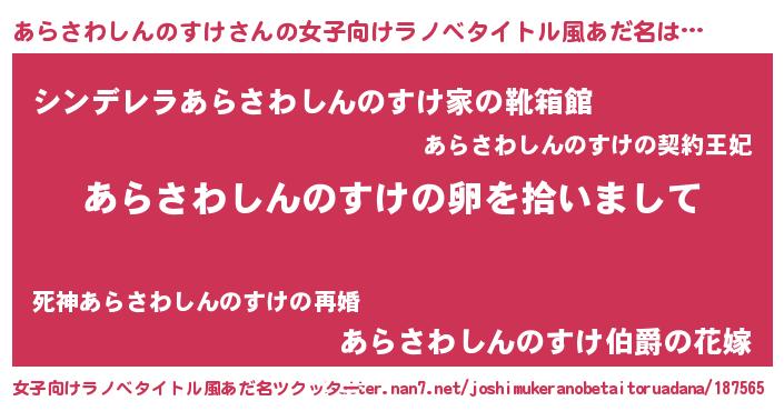 | 男性向けラノベタイトル風あだ名 | 『ダンジョンにあらさわしんのすけを求めるのは間違っているだろうか』 |