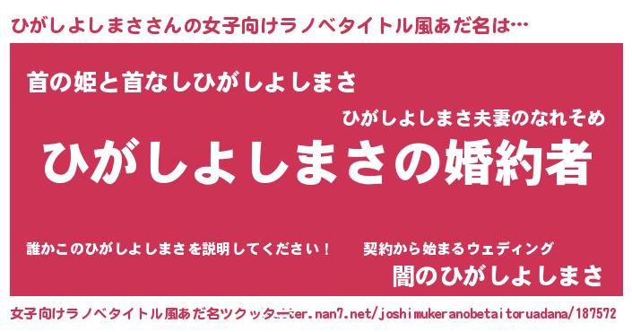 | 肩書あだ名 | 『ひがしよしまさ国家主席』 |