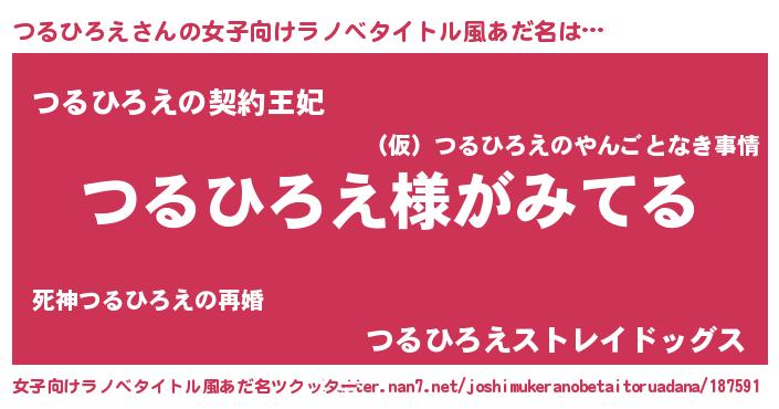 | 男性向けラノベタイトル風あだ名 | 『つるひろえの嫁は女の子じゃないと思った?』 |
