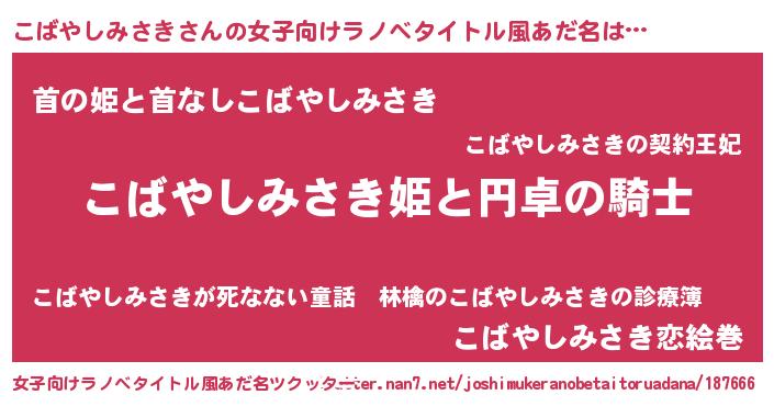 | 男性向けラノベタイトル風あだ名 | 『コバヤシミサキアートオンライン』 |