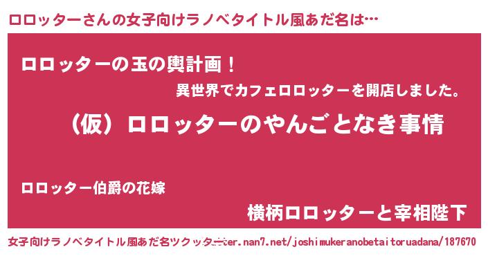 | ヘコむあだ名 | 『ロロっふぃ~』『ロロッター(苦笑)』 |