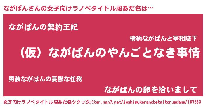 | 男性向けラノベタイトル風あだ名 | 『ながぱんの憂鬱』 |