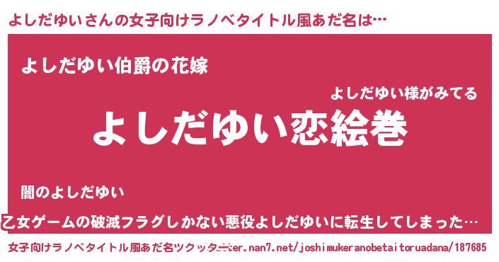 | 肩書あだ名 | 『よしだゆい教授』『よしだゆい総理大臣』 |