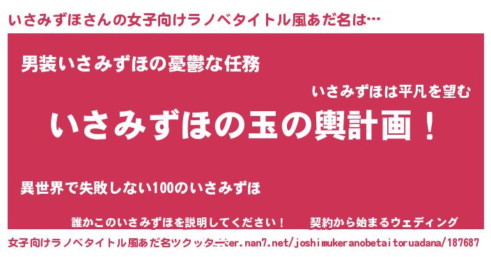 | ヒーロー風カッコイイあだ名 | 『スーパーイサミズホ』『銀牙騎士イサ』 |