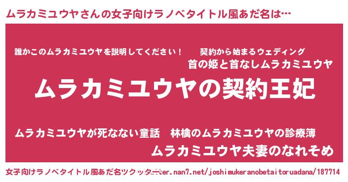 | 胡散臭い通販商品みたいなあだ名 | 『来世でも幸せになれる健康食品…その名も「ムラカミユウヤ」』 |