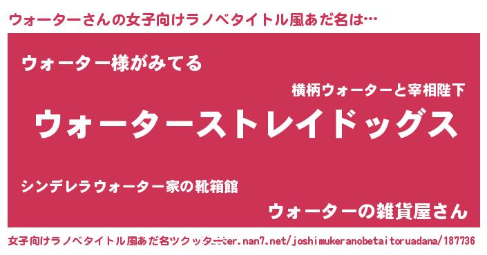| 男性向けラノベタイトル風あだ名 | 『Re:ウォーターから始める異世界生活』 |