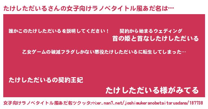 | 意味不明あだ名 | 『住所不定無職たけしただいる(47歳)』 |