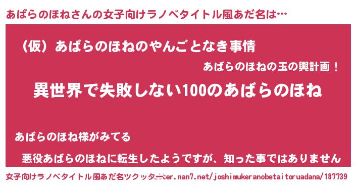 | ヘコむあだ名 | 『あばらのほね(遠い目)』『あばにー』 |