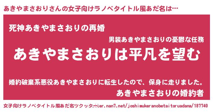| 男性向けラノベタイトル風あだ名 | 『ダンジョンにあきやまさおりを求めるのは間違っているだろうか』 |