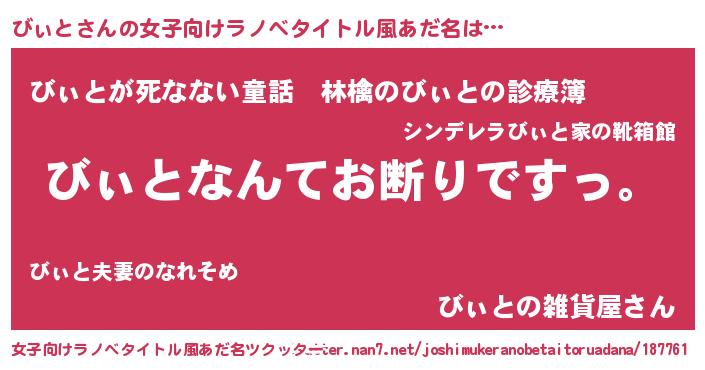 | 男性向けラノベタイトル風あだ名 | 『魔法科高校のびぃと』 |