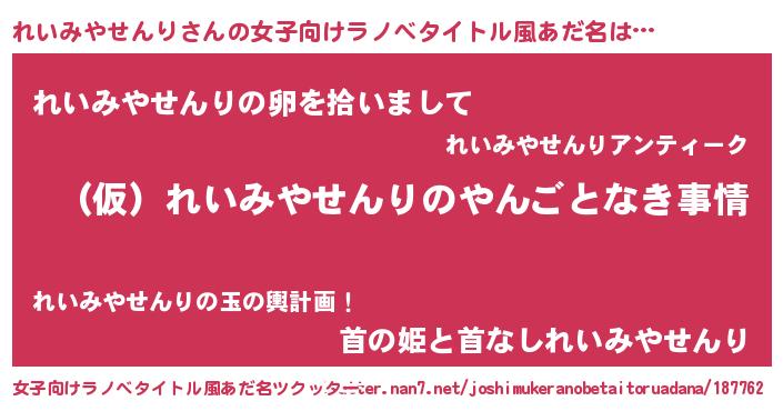 | 男性向けラノベタイトル風あだ名 | 『れいみやせんりの憂鬱』 |