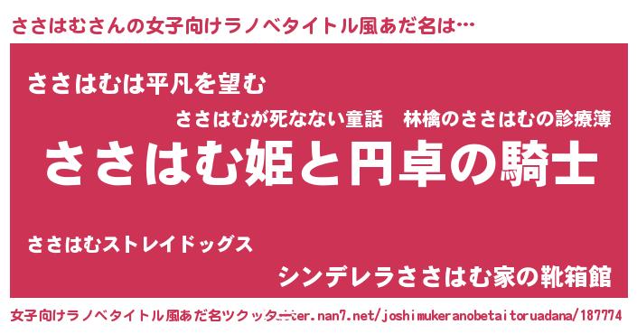 | 胡散臭い通販商品みたいなあだ名 | 『モテモテ間違いなし水晶球…その名も「ささはむ」』 |
