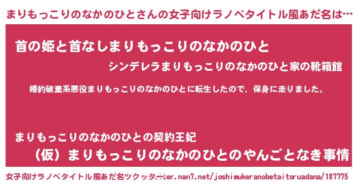 | 男性向けラノベタイトル風あだ名 | 『マリモッコリノナカノヒトスレイヤー』 |