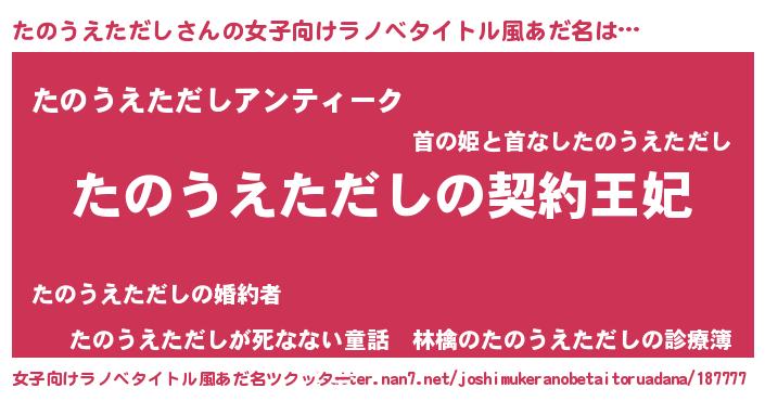 | 男性向けラノベタイトル風あだ名 | 『たのうえただしという概念が存在しない退屈な世界 』 |