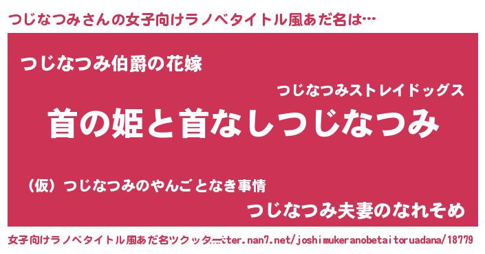 | ファンタジー風あだ名 | 『エターナルツジナツミー』『ゼツジトゥ』 |
