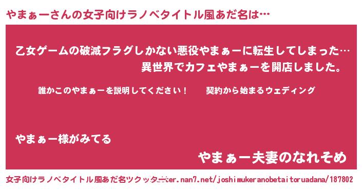 | 男性向けラノベタイトル風あだ名 | 『ヤマァーアートオンライン』 |