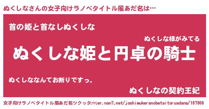 | 男性向けラノベタイトル風あだ名 | 『ぬくしなの憂鬱』 |