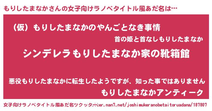 | 男性向けラノベタイトル風あだ名 | 『緋弾のモリシタマナカ』 |