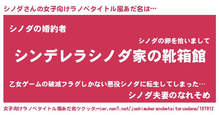 | 男性向けラノベタイトル風あだ名 | 『冴えないシノダの育てかた』 |