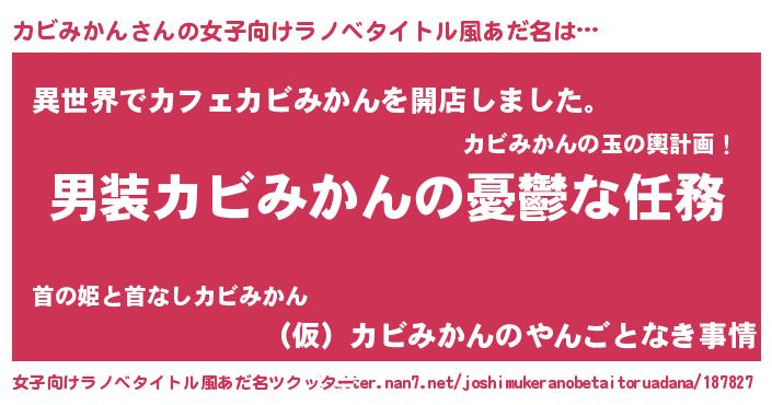 | 男性向けラノベタイトル風あだ名 | 『うちのカビみかんが世界を掌握している!』 |