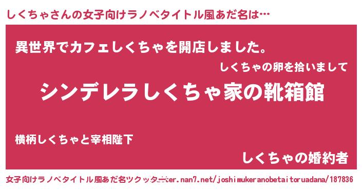 | 胡散臭い通販商品みたいなあだ名 | 『絶対に幸福をもたらす水素水…その名も「しくちゃ」』 |