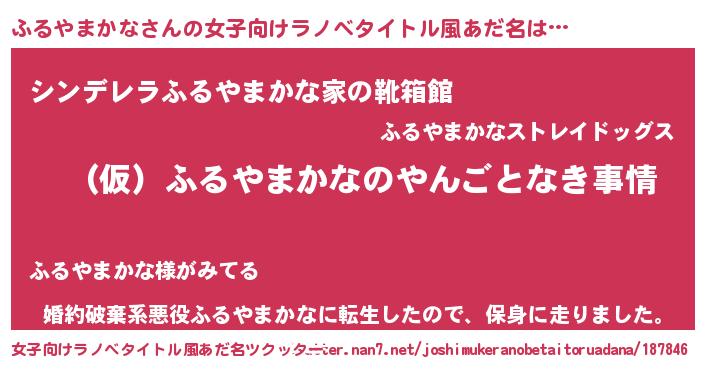 | 胡散臭い通販商品みたいなあだ名 | 『必ず成功するブレスレット…その名も「ふるやまかな」』 |