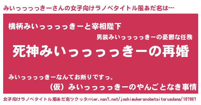 | 男性向けラノベタイトル風あだ名 | 『ノーゲーム・ノーミイッッッッキー』 |