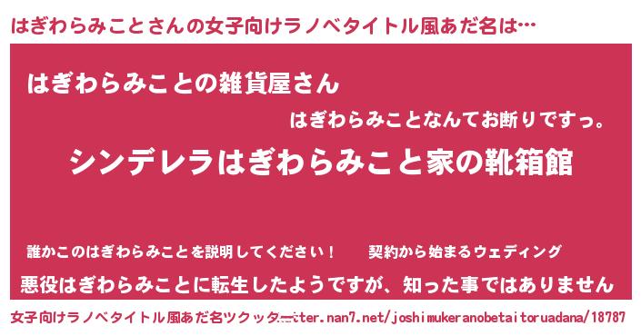 | 男性向けラノベタイトル風あだ名 | 『冴えないはぎわらみことの育てかた』 |