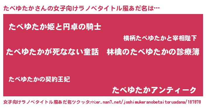 | 男性向けラノベタイトル風あだ名 | 『魔弾の王とたべゆたか』 |