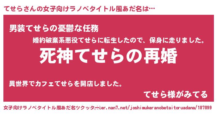 | 男性向けラノベタイトル風あだ名 | 『ノーゲーム・ノーテセラ』 |