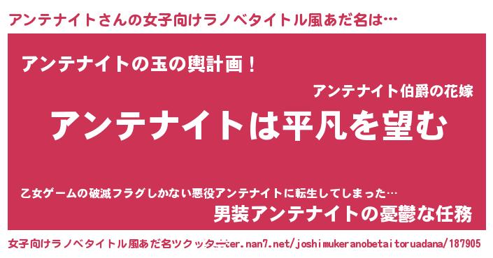 | 男性向けラノベタイトル風あだ名 | 『ダンジョンにアンテナイトを求めるのは間違っているだろうか』 |