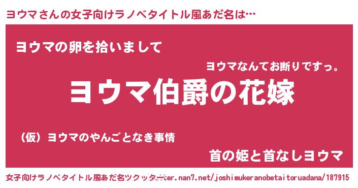 | 男性向けラノベタイトル風あだ名 | 『やはりヨウマの青春ラブコメはまちがっている 』 |