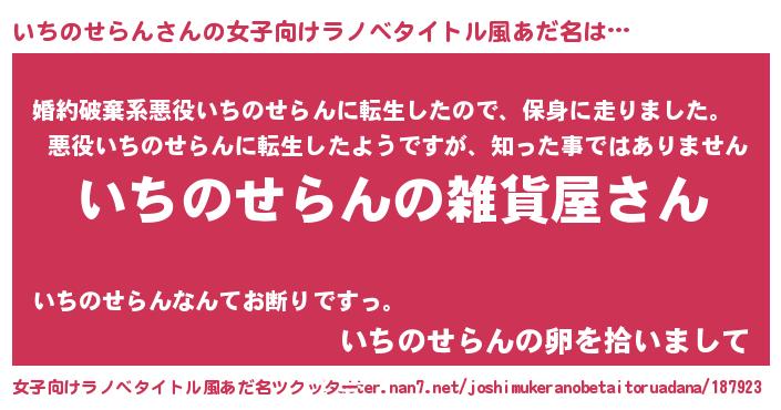 | 意味不明あだ名 | 『いちのせらんフォーエバー』 |