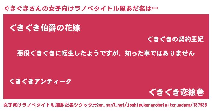 | 男性向けラノベタイトル風あだ名 | 『この素晴らしい世界にぐきぐきを!』 |