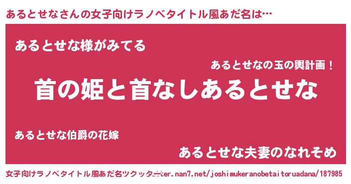 | 男性向けラノベタイトル風あだ名 | 『はたらくあるとせなさま!』 |