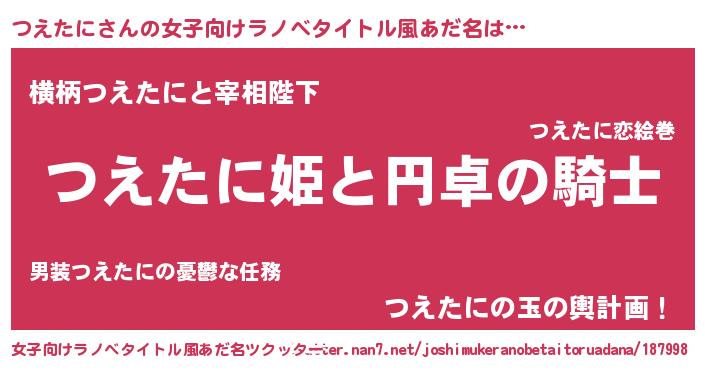 | 男性向けラノベタイトル風あだ名 | 『ツエタニアートオンライン』 |