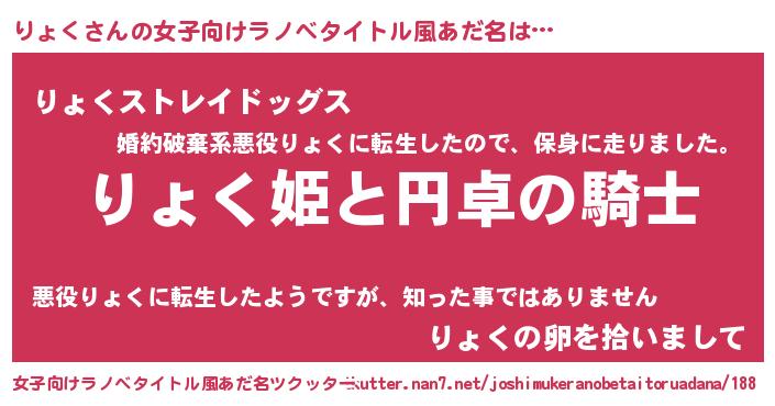 | 男性向けラノベタイトル風あだ名 | 『りょくの憂鬱』『リョクスレイヤー』 |