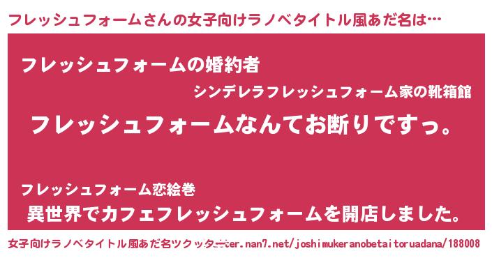 | 意味不明あだ名 | 『自称フレッシュフォーム』 |