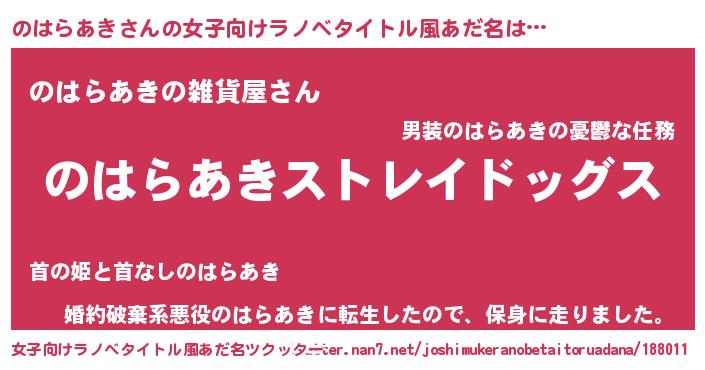 | 胡散臭い通販商品みたいなあだ名 | 『芸能人もオススメする高麗人参…その名も「のはらあき」』 |