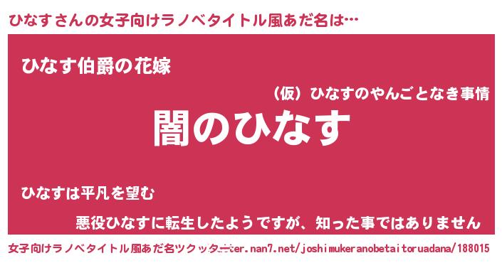 | ファンタジー風あだ名 | 『ゼヒナトゥ』『エターナルヒナスー』 |