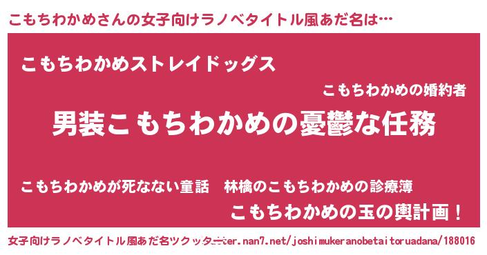 | 男性向けラノベタイトル風あだ名 | 『冴えないこもちわかめの育てかた』 |