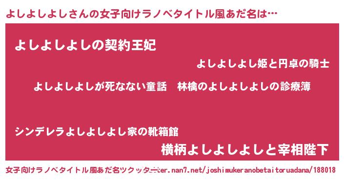 | 意味不明あだ名 | 『住所不定無職よしよしよし(6歳)』 |