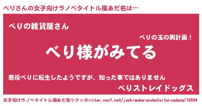 | 男性向けラノベタイトル風あだ名 | 『べりの嫁は女の子じゃないと思った?』 |