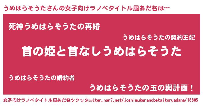 | 意味不明あだ名 | 『眠気覚ましガムうめはらそうた味』 |