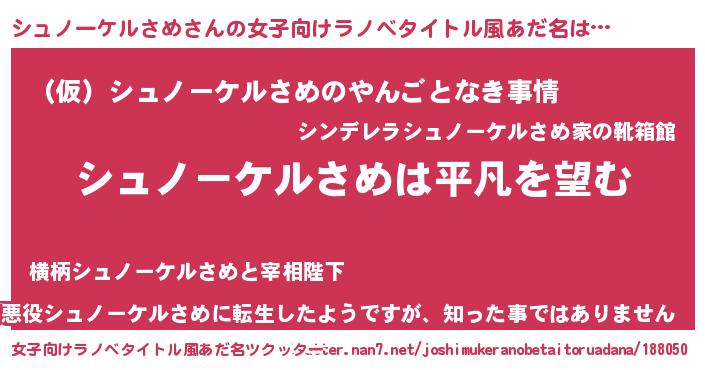 | 男性向けラノベタイトル風あだ名 | 『ダンジョンにシュノーケルさめを求めるのは間違っているだろうか』 |