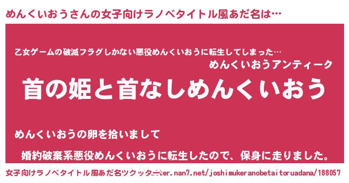 | 男性向けラノベタイトル風あだ名 | 『はたらくめんくいおうさま!』 |