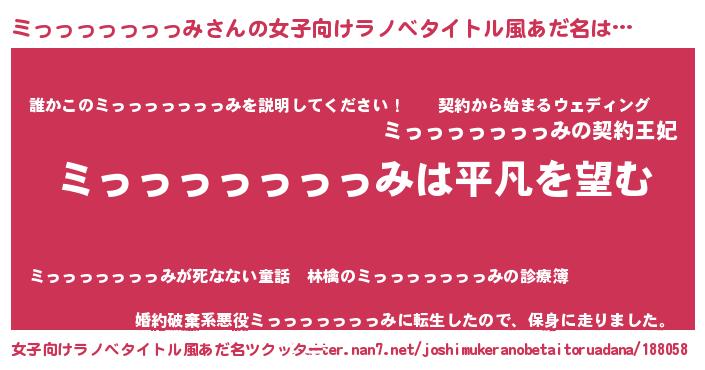 | 胡散臭い通販商品みたいなあだ名 | 『信頼と実績のサプリメント…その名も「ミっっっっっっっみ」』 |